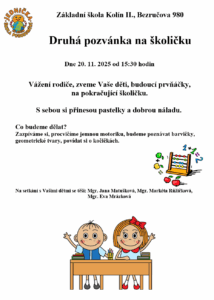 Pozvánka na druhou školičku pro budoucí prvňáčky
